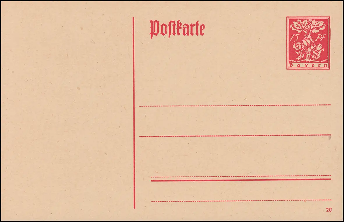 Carte postale de Bavière P 117 Edition audience 15 Pf rouge, comme dépensé **