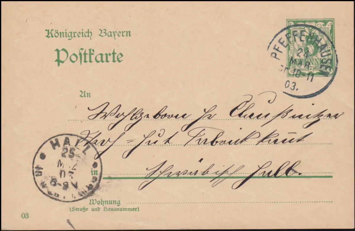 Carte postale de Bavière P 60 de PFEFFENHAUSEN 24.3.2003 à HALL (SCHWABISCH) 25.3.03