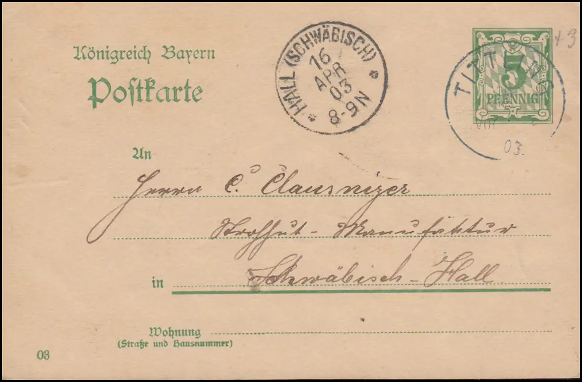 Carte postale de Bavière P 60 de TITTLING 16.4.2003 à HALL (SCHWABISCH) 16.04.03