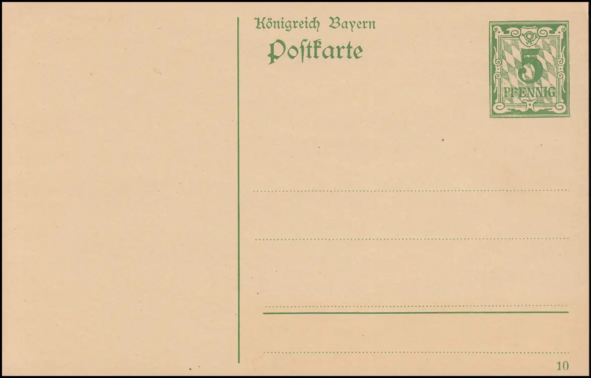 Carte postale de Bavière P 83/01, paragraphe 5 Pf, DV 10, divisée par le volume des dépenses **