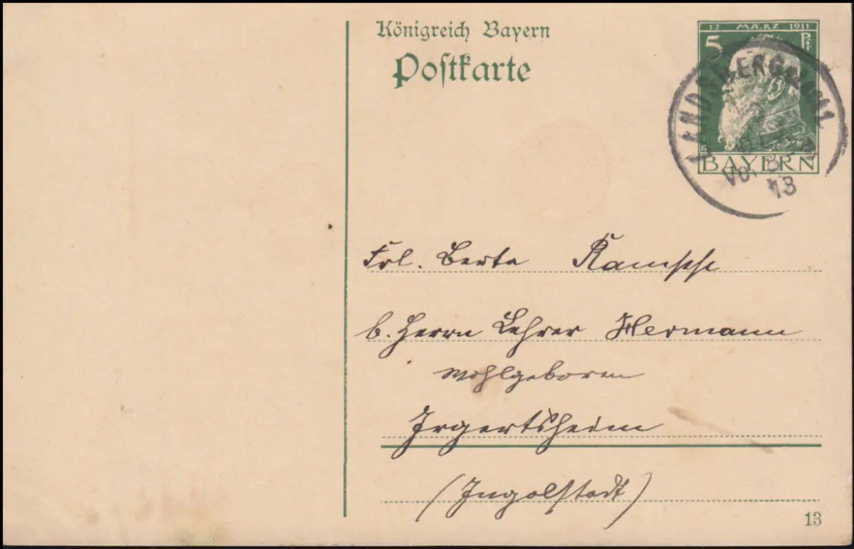 Bayern Postkarte P 87I/03 Luitpold DV 13 de LANDSBERG (LECH) 10.11.1913