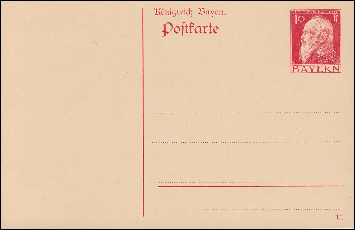 Bayern Postkarte P 88I/01 Luitpold 10 Pf rouge DV 11 coupé, **