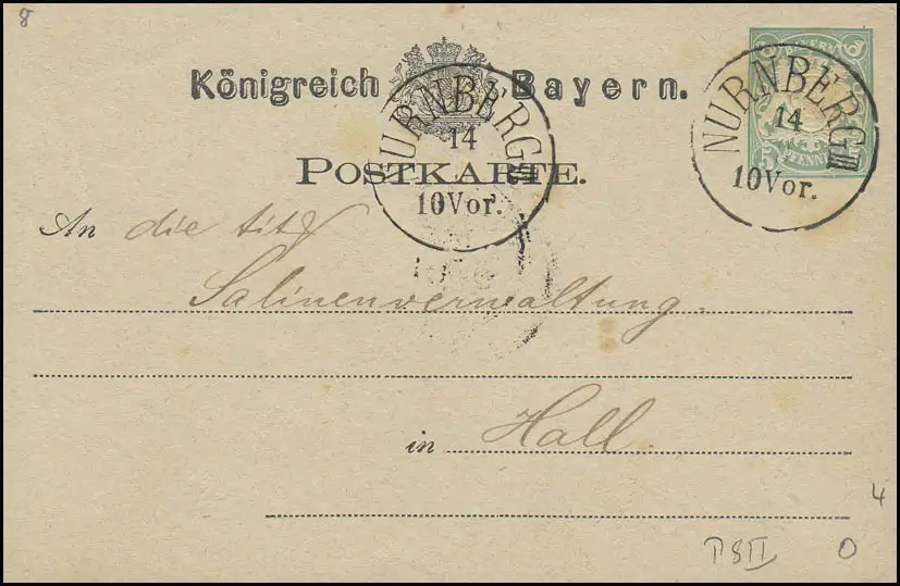 Bayern Postkarte Wappen 5 Pfennig NÜRNBERG 14.8.77 vers Hall / Salinenverwaltung