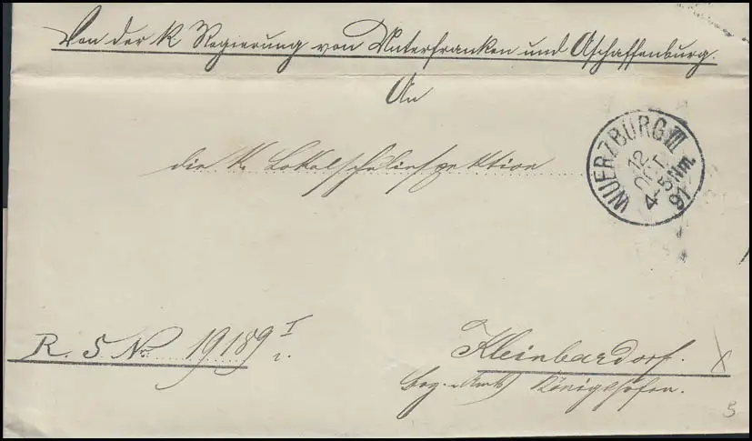 Bayern Regierungsverfassung WÜRZBURG 12.10.91 sur SULZFELD 13.10. vers Kleinbardorf