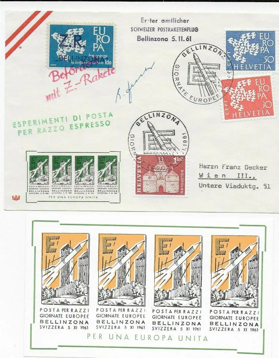 Transporté à Vienne avec un missile Z. 1961 Bellinzona avec supplément Vignettenblock