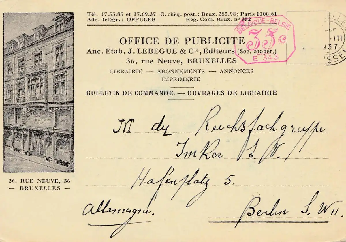 Belgique: 1907: Carte vers Berlin.