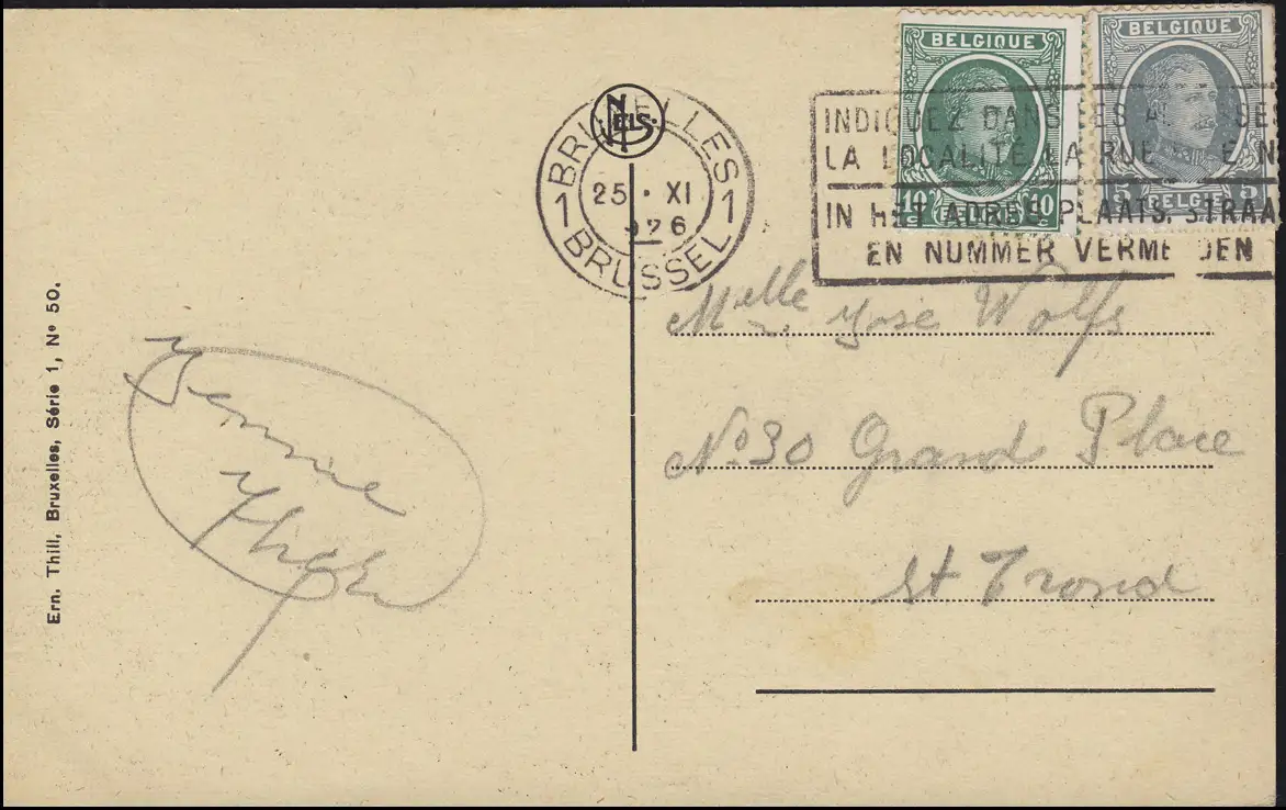 Belgique Carte de vue Bruxelles: Poste centrale, BRUXELLES 25.9.1926