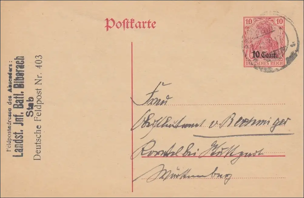 Pologne: Adresse postale complète de Biberach vers Stuttgart 1917