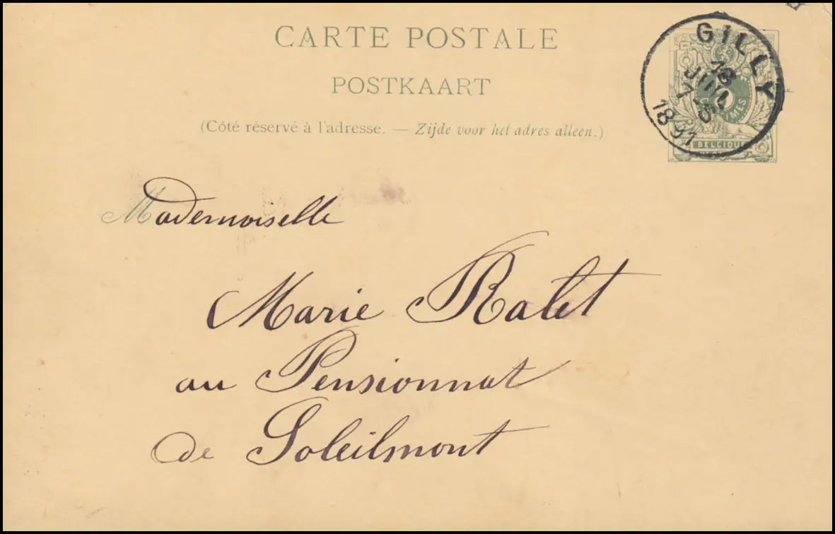 Belgique Carte postale P 26I chiffre de GILLY 18.7.1891 vers Soleilmont