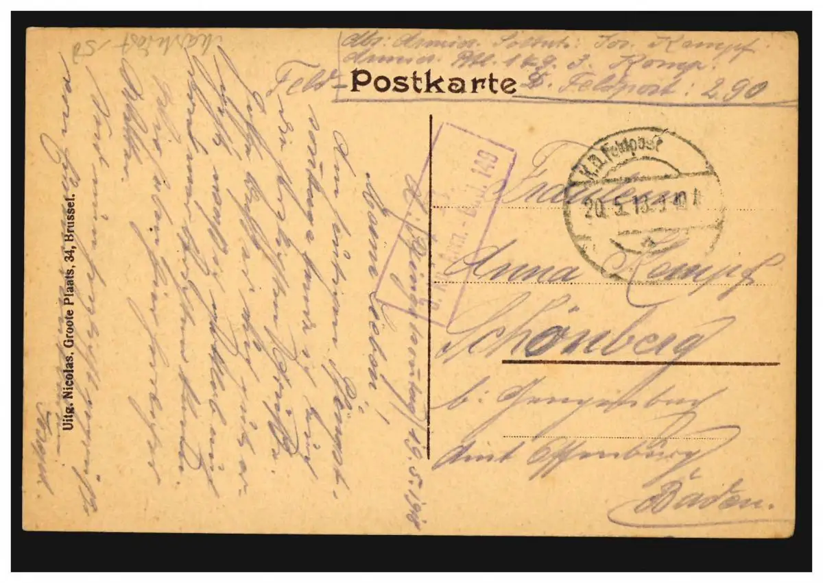 Belgique AK Bruxelles: Marktplatz, Feldpost BS Armierts-Batl. 149 - 20.5.1913