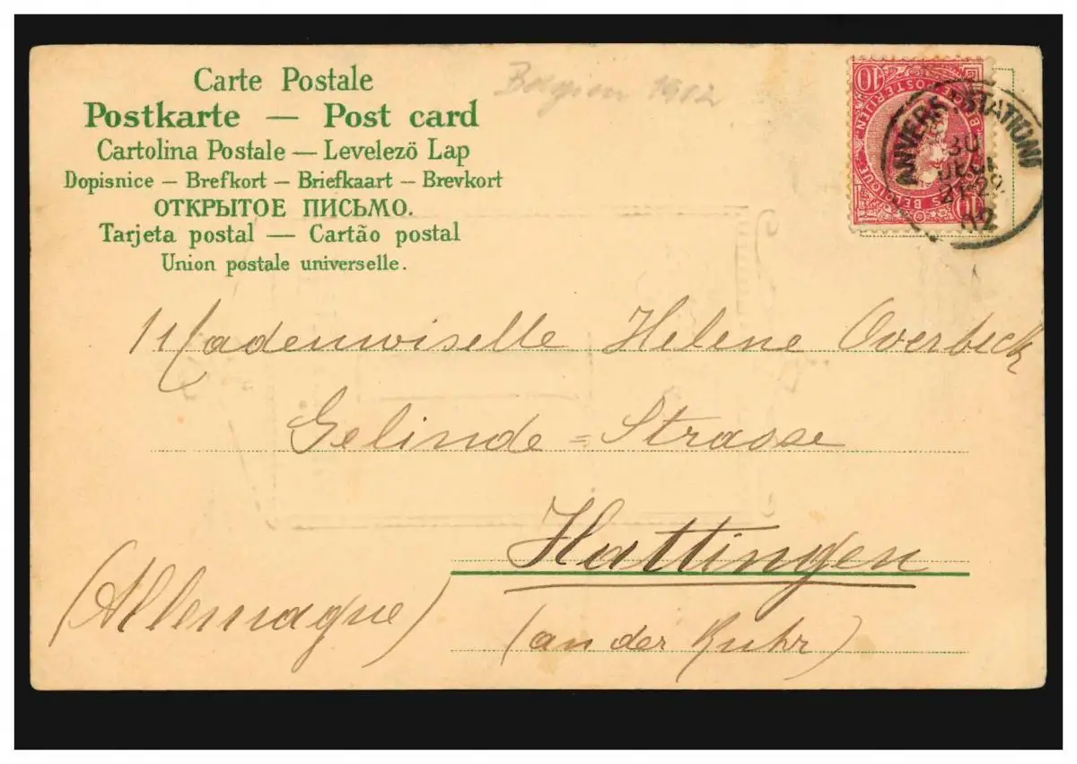 Belgique Carte de l'année Nouvel An Bulletin calendrier 1er janvier, ANVERS-STATION 30.12.1902