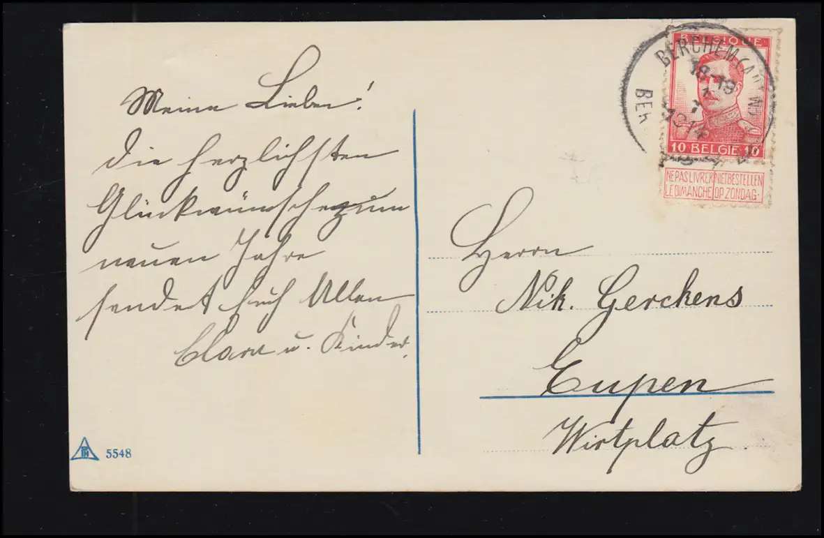 Belgique Carte de l'image Nouvel An - femme avec sacs de monnaie, BERCHEM 1914