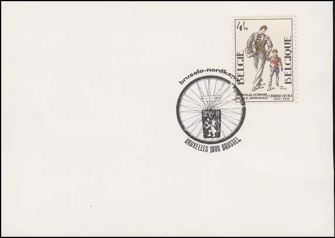 Belgique SSt Course cycliste Büssel - Nordkapp avec 1807 école sur la carte BRUXELLES 4.7.75