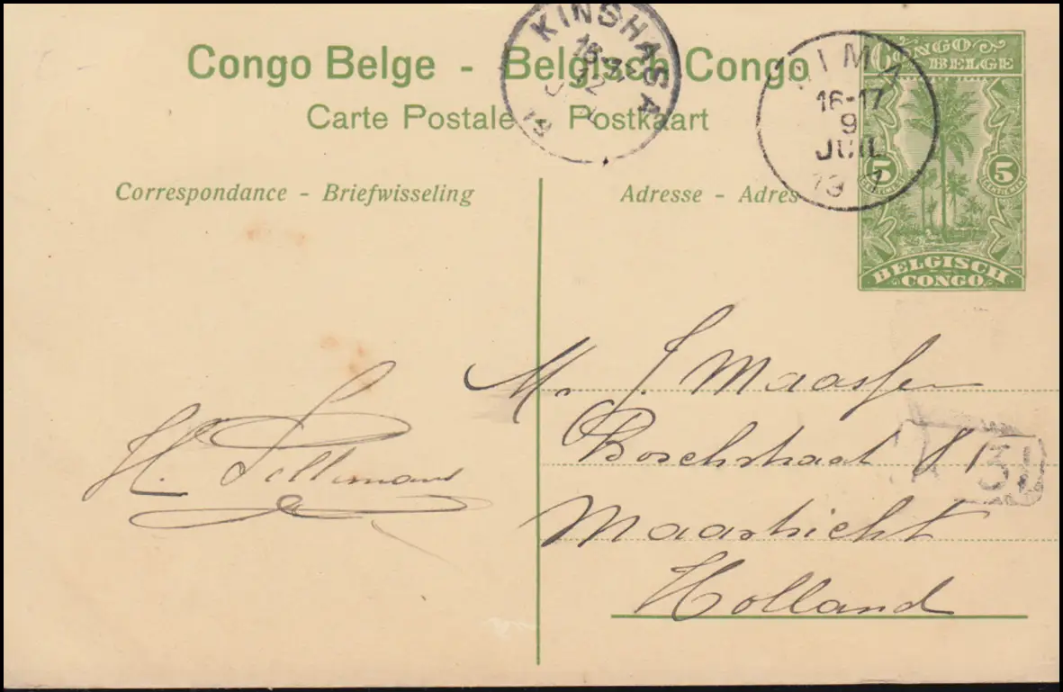 Affaire entière 5 centimes. Palmes transportées par KINSHASA 12.7.19 vers Maastricht / Hollande Contrôle: original Référence produit: 00000000016992