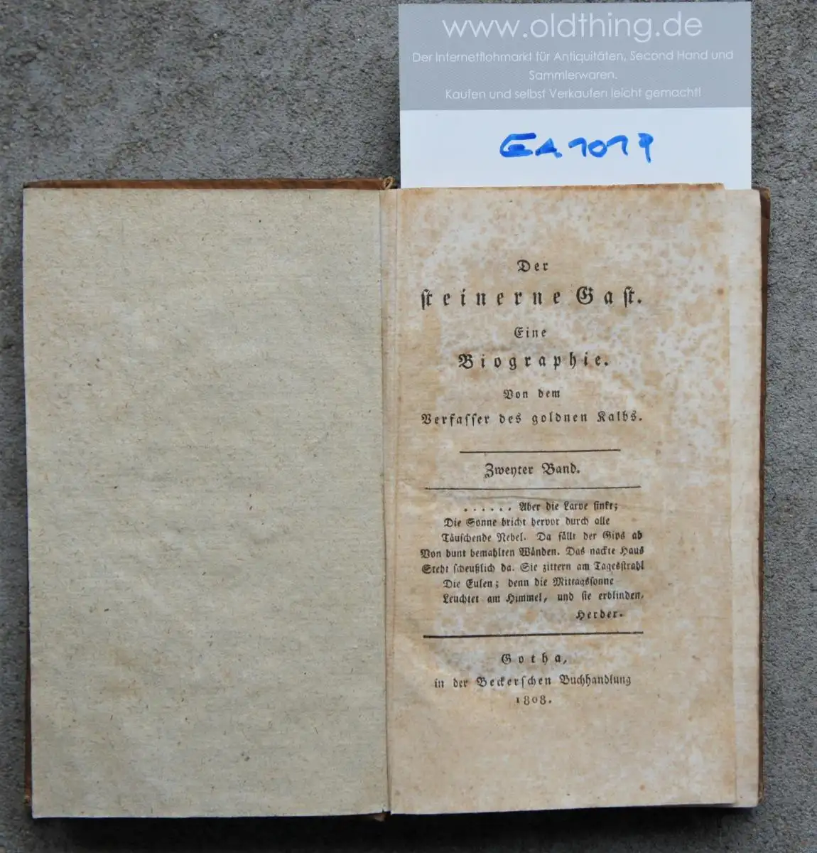 Gotha, Dans la librairie Beckers, 1808, 392 pages, Cartonné. Ben(t)zel-Sternau, Karl Graf von (* 1767 Mayence - † 1849 Mariahalden/Zürichersee): Etudes de droit, Conseil d'Etat à Erfurt. Connaître avec Wieland. À partir de 1806, à Baden, plus tard ministre des Finances à Francfort. Écrit dans le style ironique de Jean Paul romans satiriques.