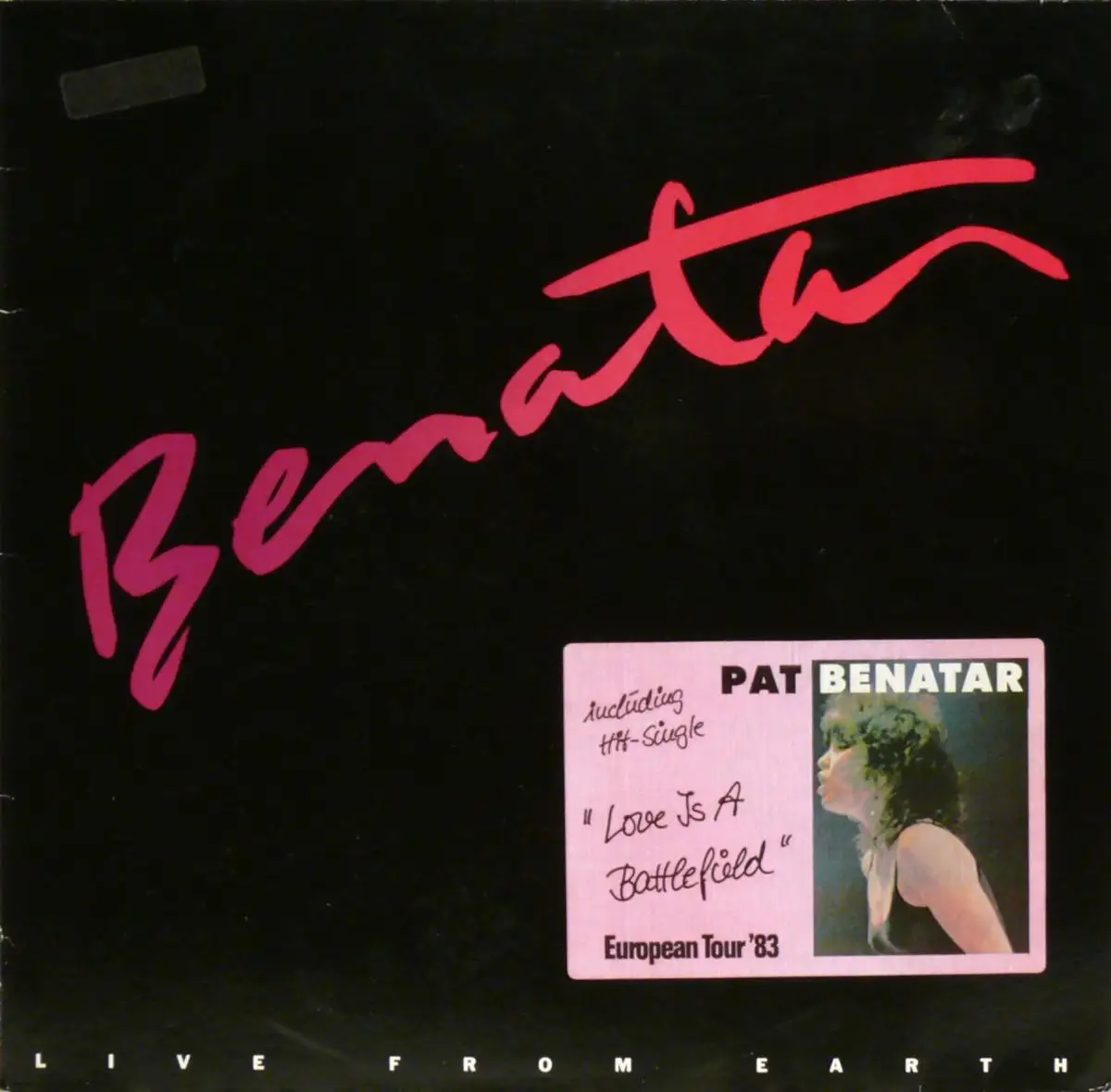 LP Album Pat Benatar - Live From Earth, price code:-320, État Platte VG Hülle VD+; Fabriqué en Allemagne en 1983 Chrysalis 205 771-320; Tracks Fire And Ice 3:45, Looking For A Stranger 3:29, I Want Out 4:04, We Life For Love 3:22, Hell Is For Children 6:00, Remplir Me With Your Best Shot 3:09, Promises In The Dark 5:13, Heartbreaker 4:21, A Battlefield Lires 3:24, Lipstick Lies 3:49