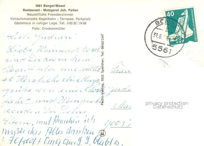 Bengel Kirche Restaurant Metzgerei Feiten Panorama Bengel postalisch gelaufen 1978 Erhaltung siehe scans [FriedD77] Frierer
