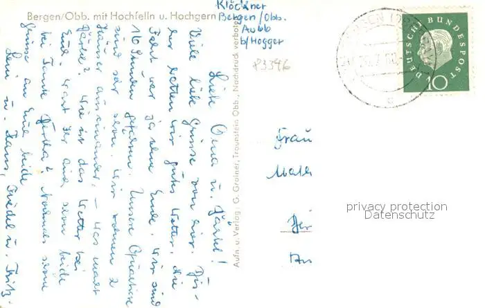 Bergen_Chiemgau Panorama gegen Hochfelln und Hochgern Chiemgauer Alpen Bergen Chiemgau postalisch gelaufen 1960 Erhaltung siehe scans [FriedD77] Frierer