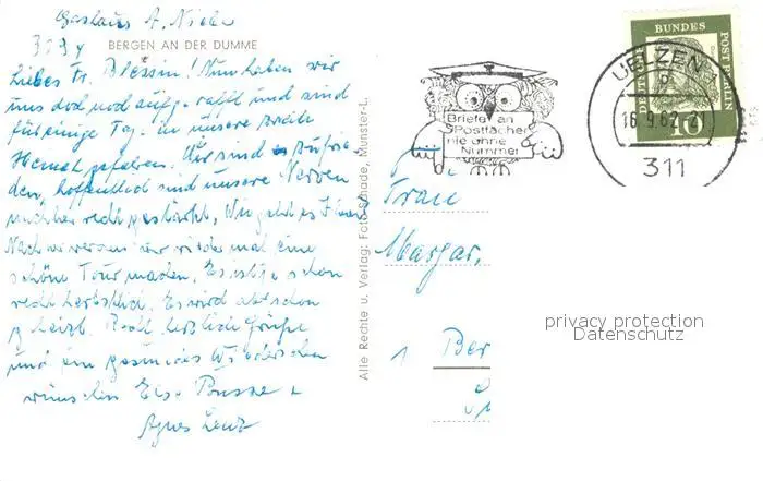Bergen_Dumme mit Freibad Bergen Dumme postalisch gelaufen 1962 Erhaltung siehe scans [LiesaD40] LiesID40