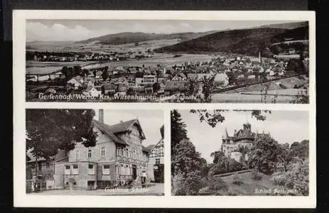 Berlepsch. Werra, Kreis Witzenhausen. Gesamtansicht, Gasthaus Schäfer, Schloss Berlepsch - Nicht gelaufen. (NPLZ 37210) Posiadamy rowniez konto zlotowkowe w Polsce.