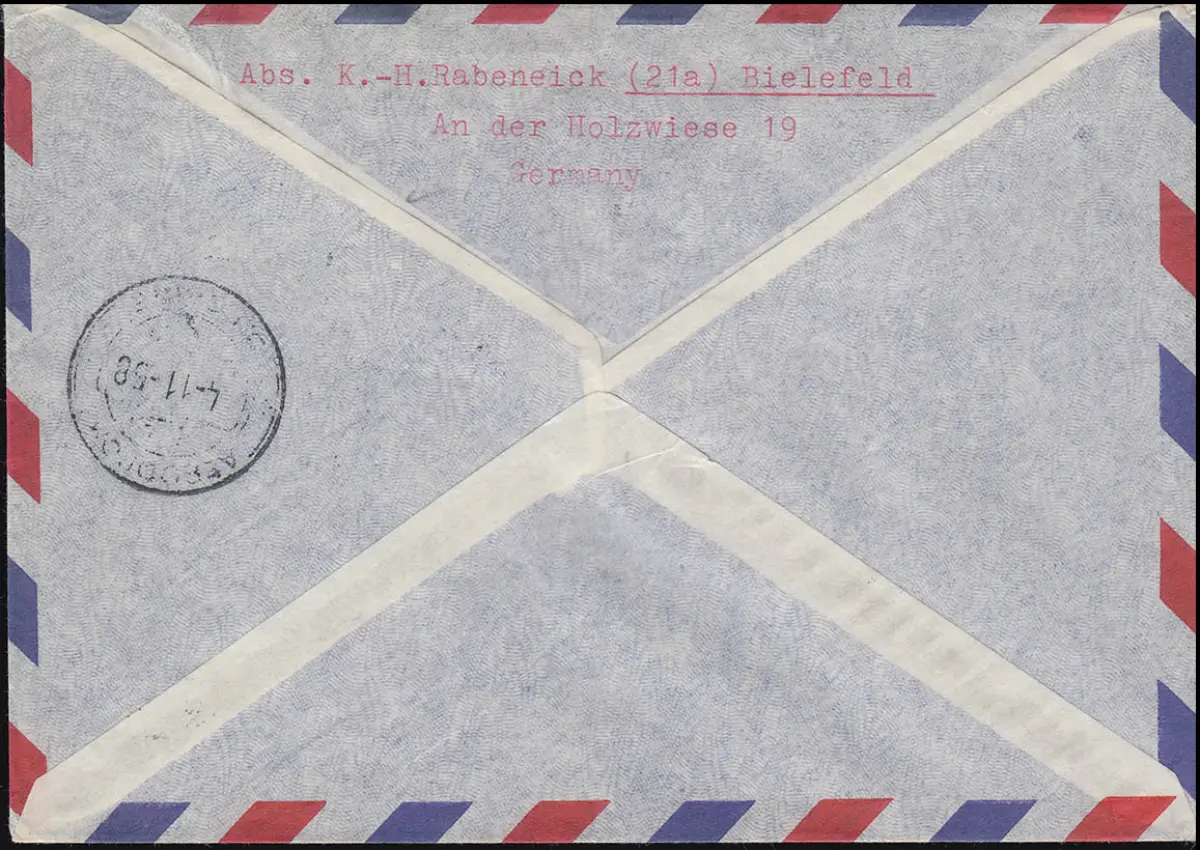 Berlin 179-180 auf Erstflugbrief Frankfurt - Kairo 3.11.1958, Ankunftsstempel