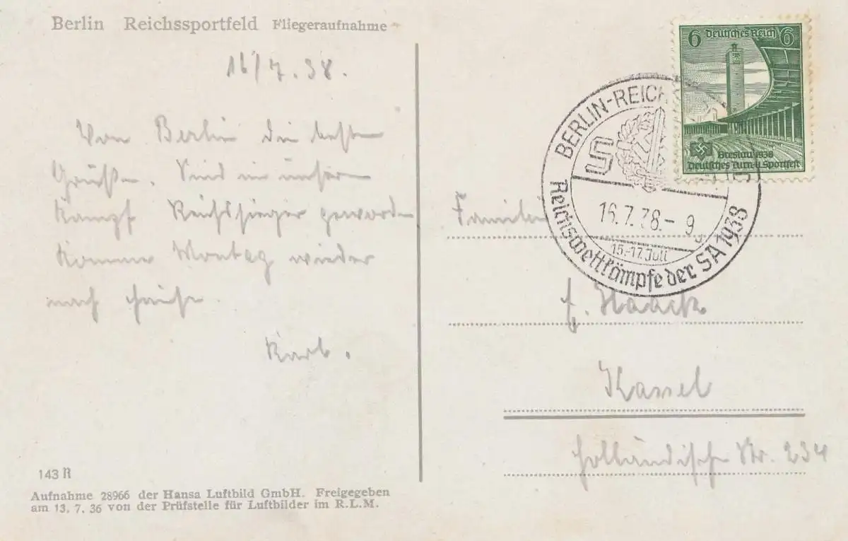 Berlin 1938: Concours Reichs de SA - Carte de vue Reissportfeld