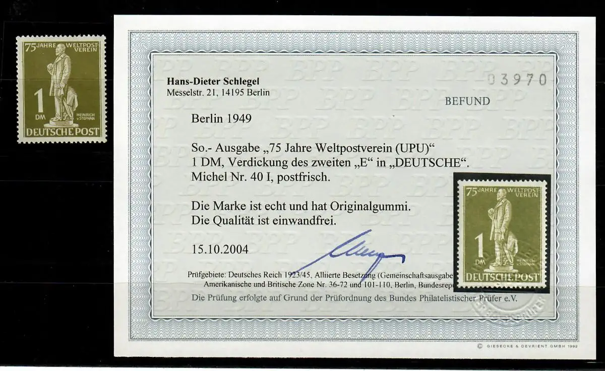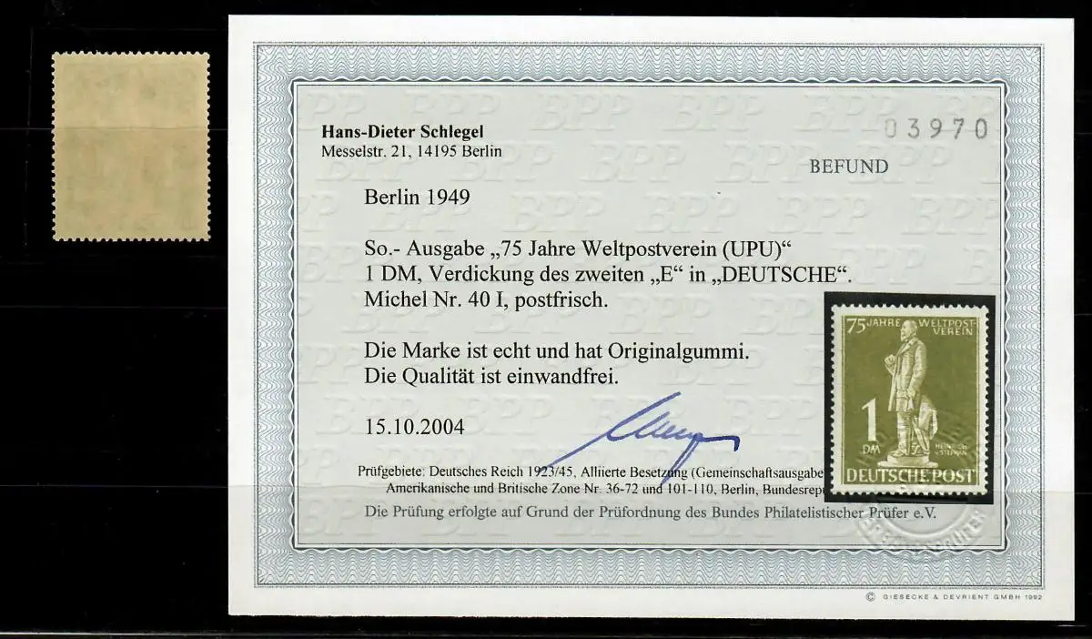 Berlin 1949: Min. 40 I, post-fraîchissement, **, BPP résultats, défauts de plaque