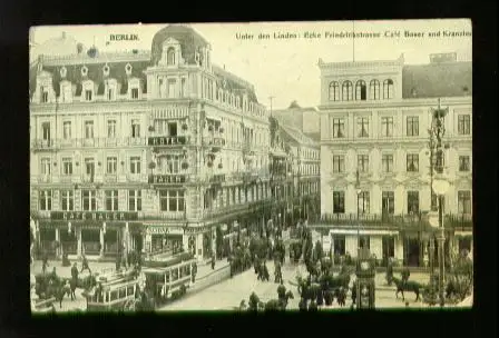 Berlin. Unter den Linden: Ecke Friedrichstrasse Cafe Bauer und Kanzler - Gelaufen 1911. (NPLZ 10000) Posiadamy rowniez konto zlotowkowe w Polsce.
