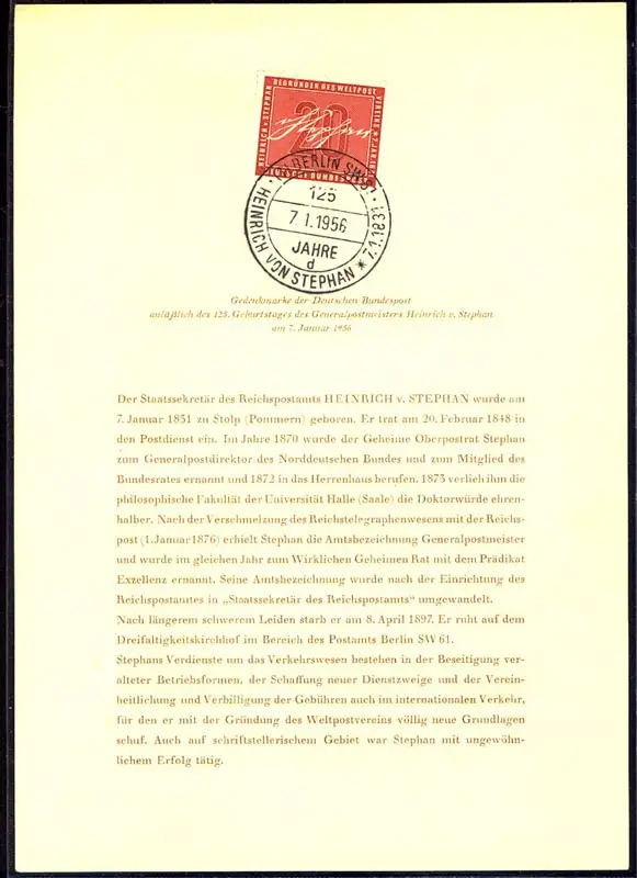 Berlin-ETB numéro 1 Stephan, lettre de cachet d, examiné Schlegel BPP
