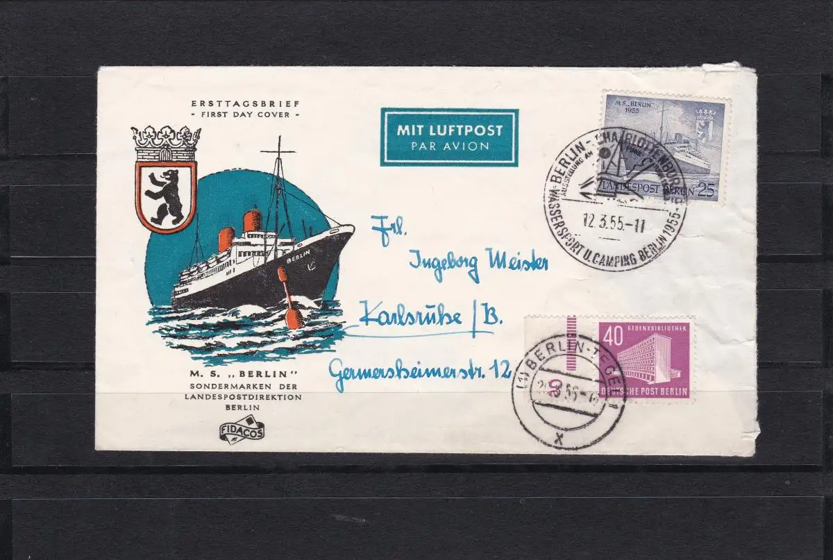 Berlin: FDC, Aeropost, Berlin -Karlsruhe - Min. 122 Dz: Signe d'impression