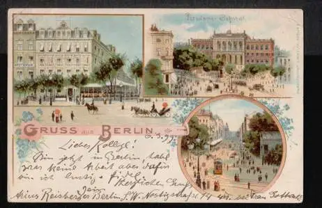 Berlin. Gruss aus. Potsdamer Bahnhof. - Gelaufen 1899. (NPLZ 10000) Posiadamy rowniez konto zlotowkowe w Polsce.