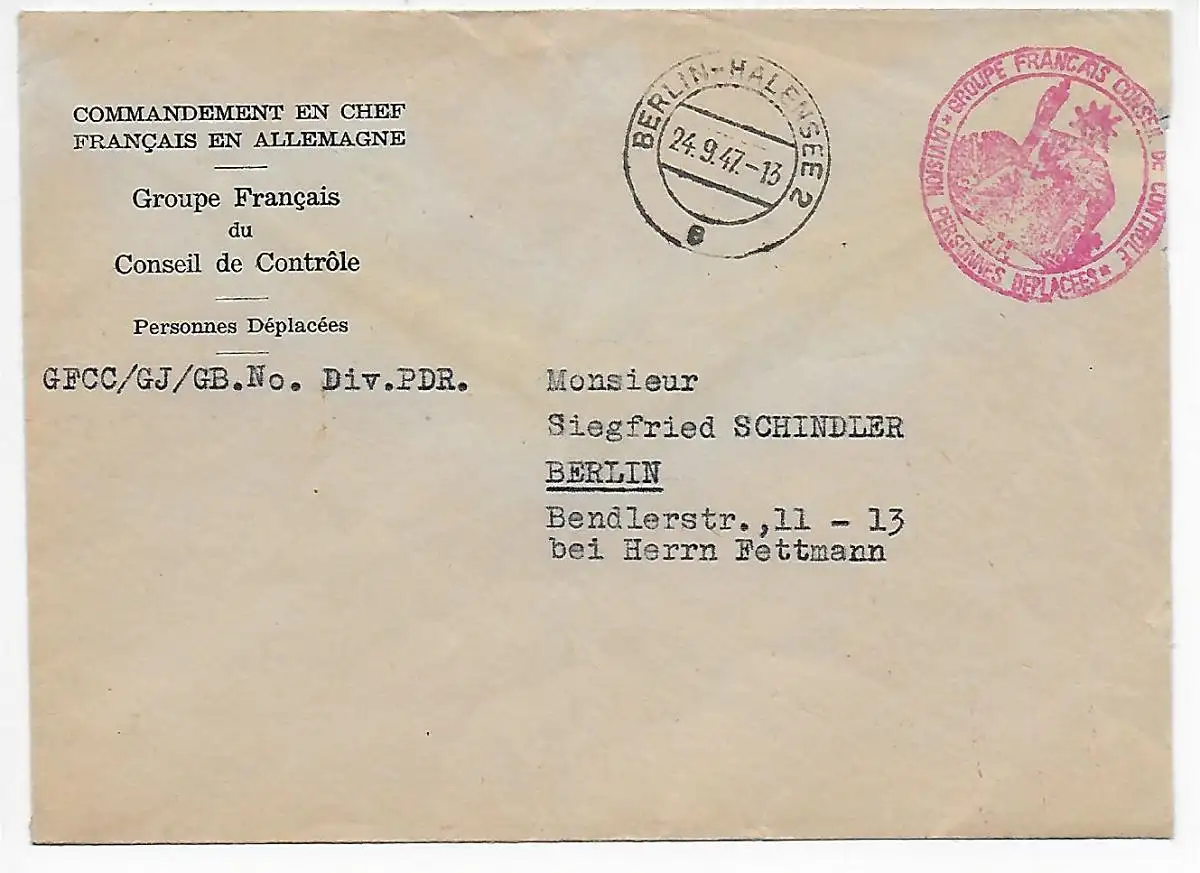 Berlin Halensee 1947: Commandement en Chef Francais une Allemagne