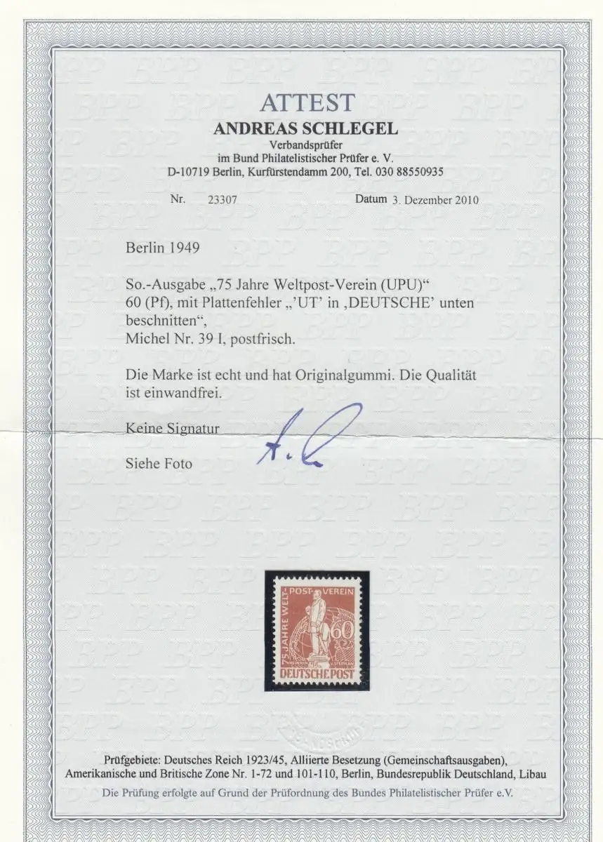 Berlin: Min. 39I, erreur de plaque, post-fraîchissement, BPP Attest