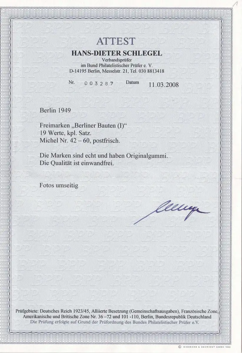 Berlin: Min. 42-60 - Construction - Postfraîchissement, BPP Attest