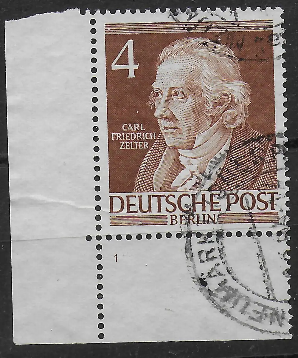 Berlin: Min. 91, Eckrand E3, cacheté avec le secteur n° 1