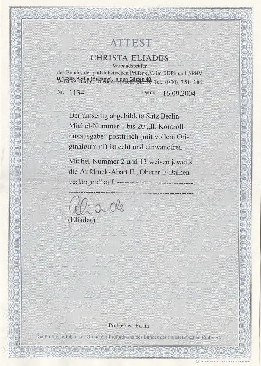 Berlin: Min. 1-20,postfraîchissement, BPP Attest