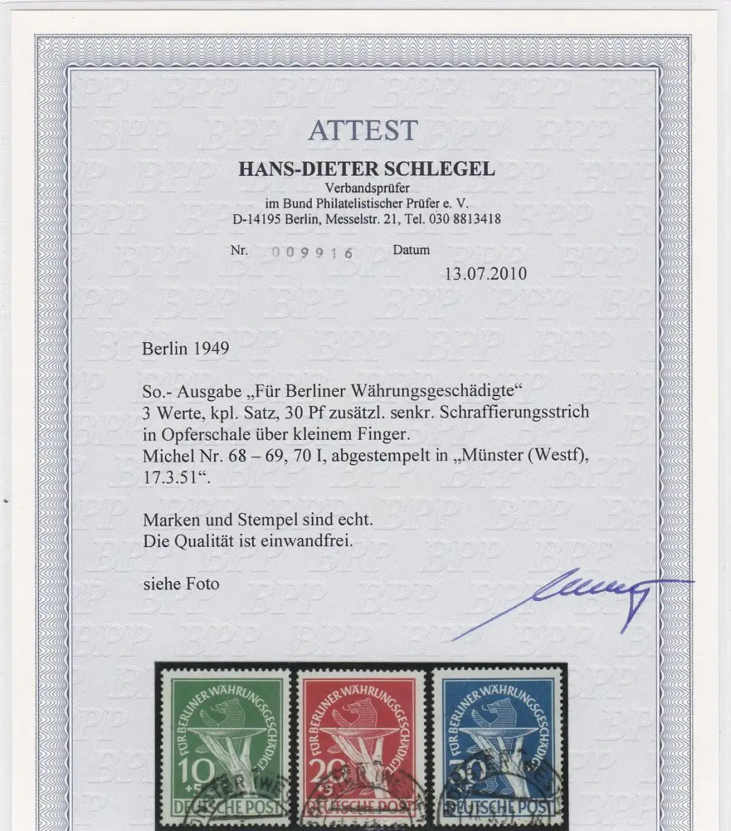 Berlin: Min. 68-70, cacheté, BPP Attest
