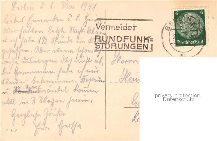 Berlin Ostwest Achse Berlin postalisch gelaufen 1941 Erhaltung siehe scans [WerneD78] WernPID7