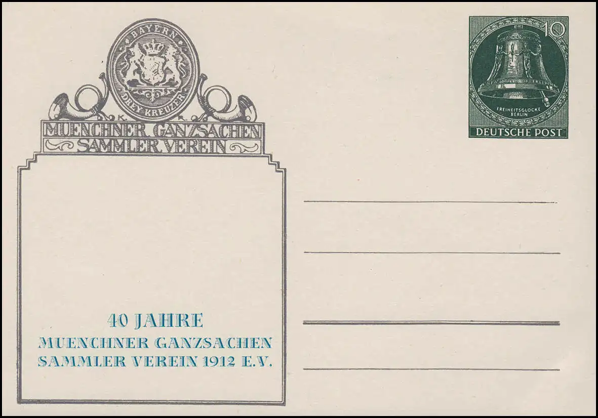 Berlin PP 13 Glücksglocke 10 Pf. Munich Geldfach-Verein 1952, inutilisé