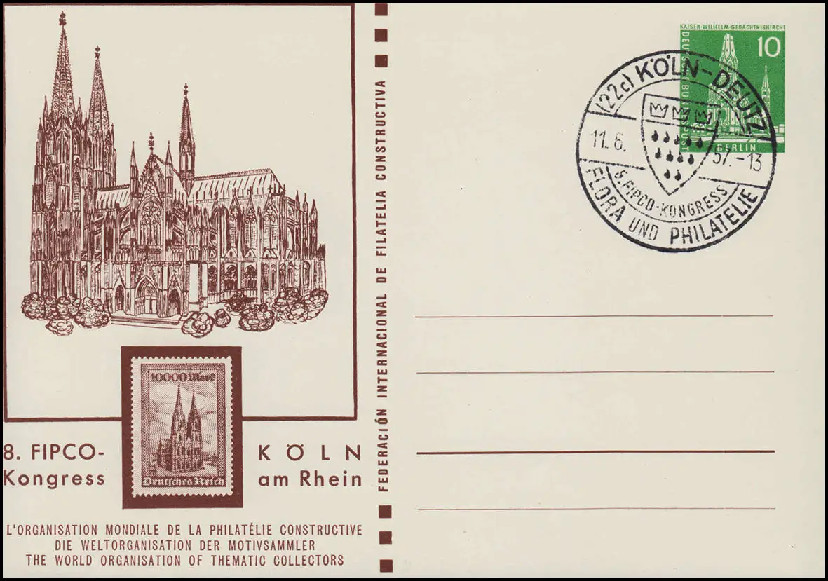 Berlin PP 18/1 Recueilleur de motifs 8ème Congrès FIPCO Cologne 1957, SSt 11.6.57