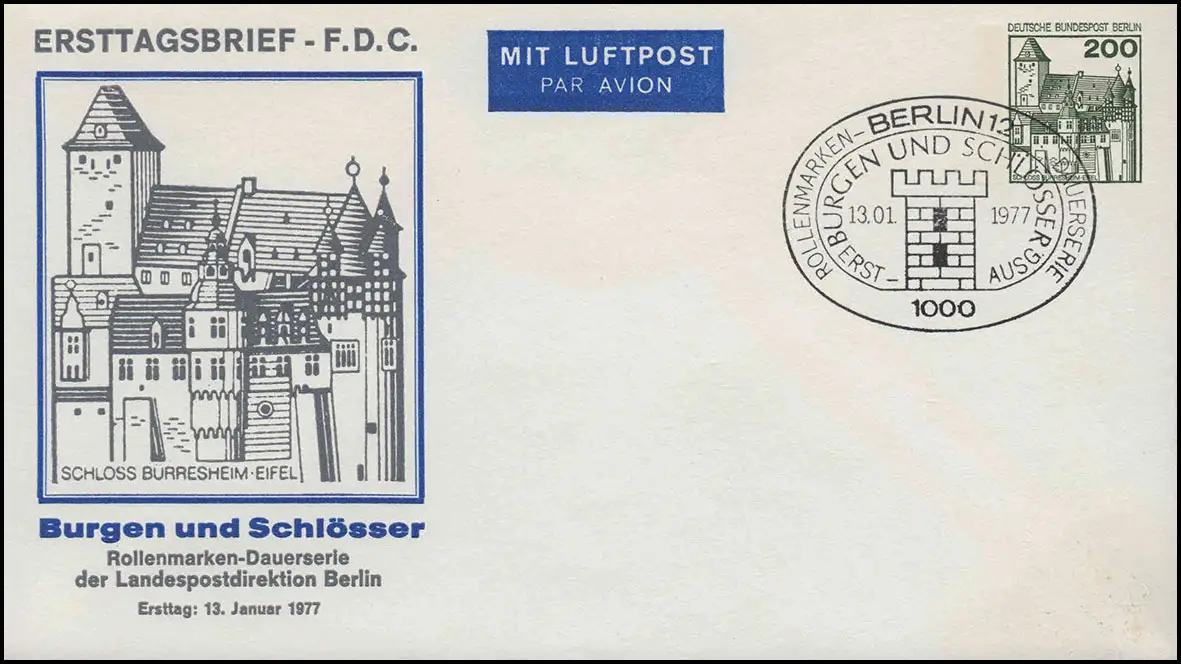 Berlin PU 81/1 BuS 200 Pfennig, FDC ESSt BERLIN Burgen et Châteaux 13.01.1977