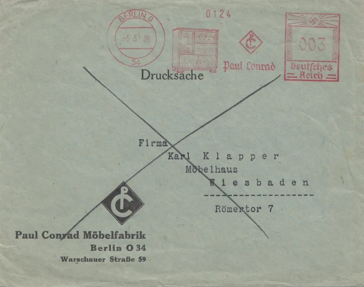 Berlin Paul Conrad Meublefabrick 1939 d'après Wiesbaden