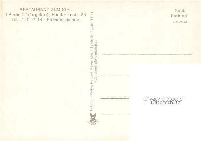 Berlin Restaurant zum Igel Gartenwirtschaft Motorboote Berlin postalisch nicht gelaufen nach 1965 Erhaltung siehe scans [WerneD78] WernPID7