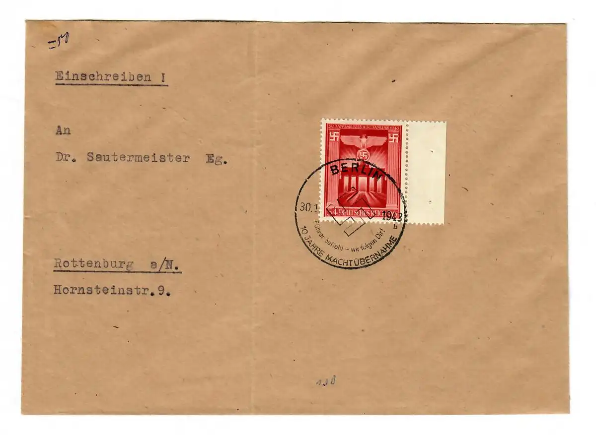 Berlin: Stamp spécial 30.1.1943: 10 ans de prise de pouvoir