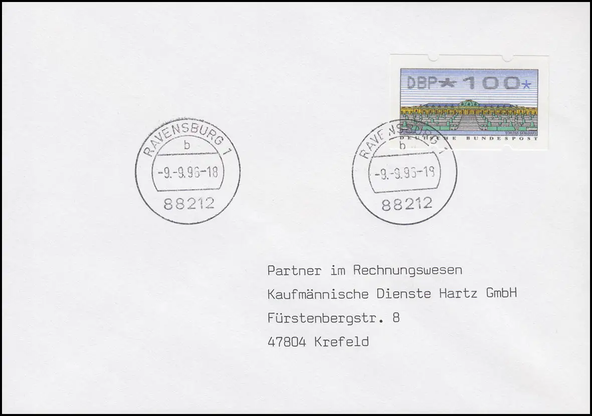 Essai ATM avec carte à puce: 9.9.96 à Ravensburg 1, Ferbrief