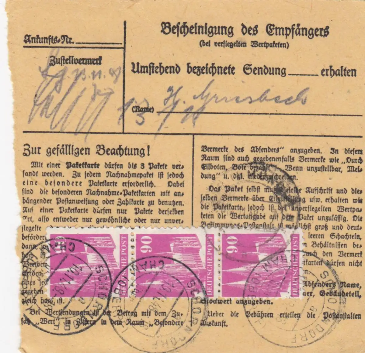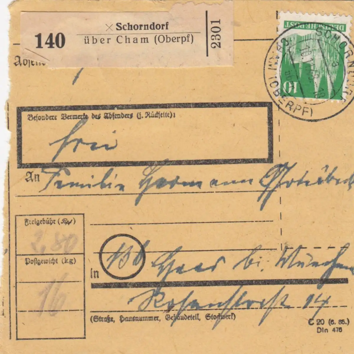 BiZone Carte de paquet 1948: Schorndorf a Haar b. Munich