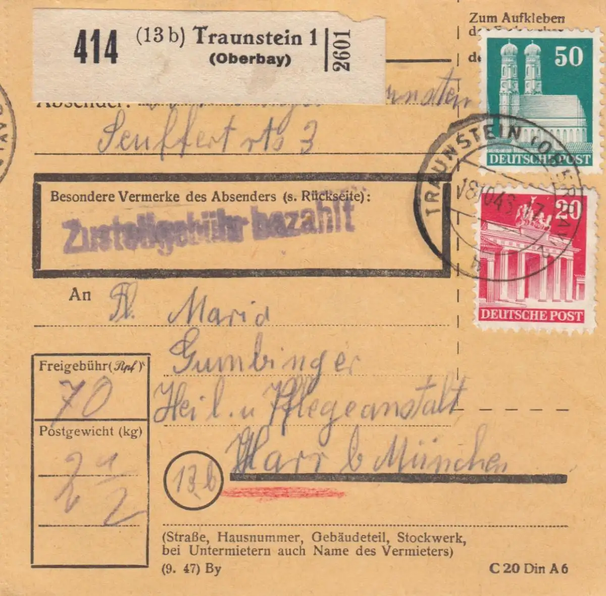 BiZone Carte de paquet 1948: Traunstein après Heil et soins de santé Haar b. Munich