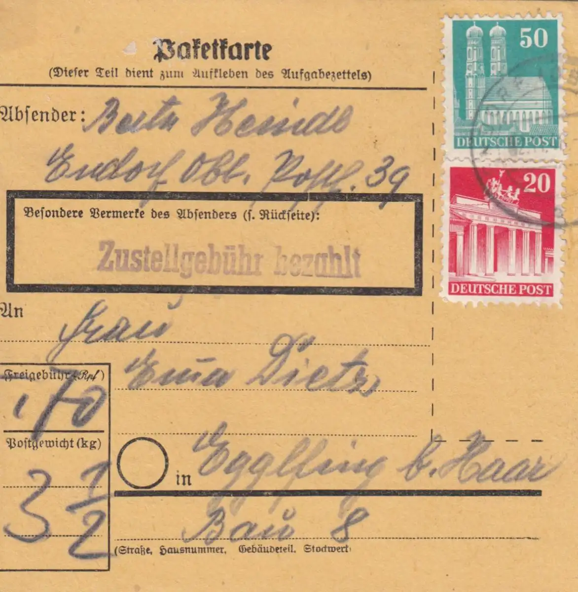 BiZone Carte de paquet: Endorf après Eglfing b. Haar