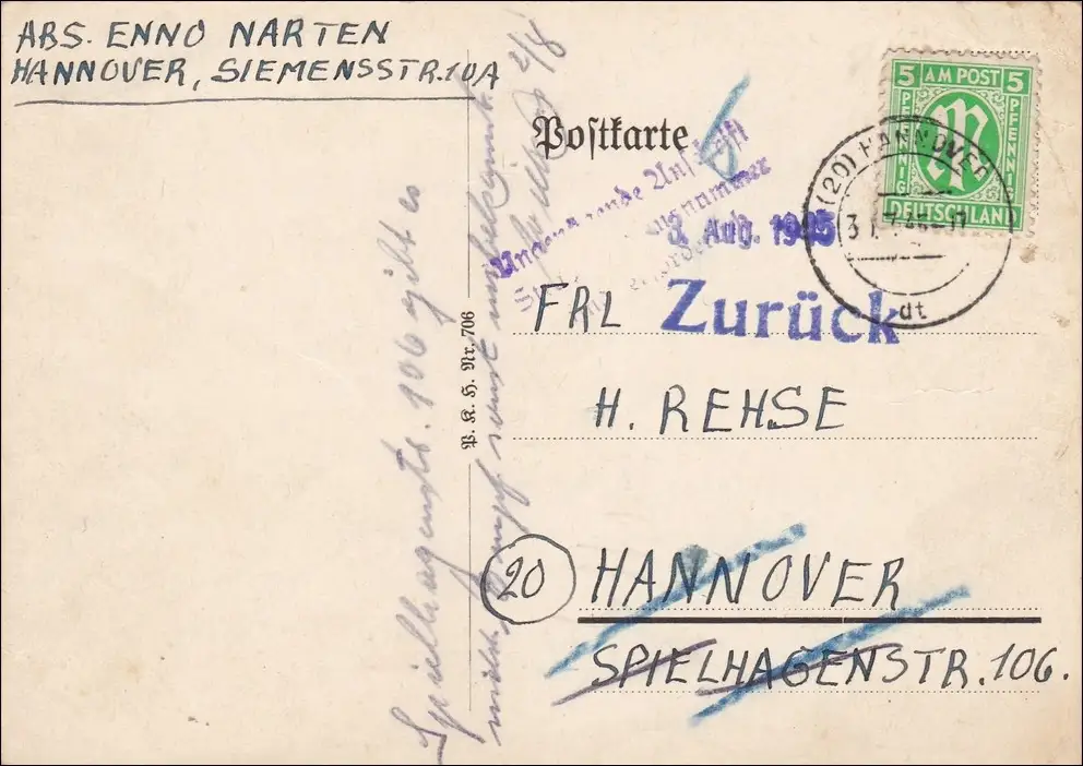 BiZone: Carte postale Hanovre 1945 - Précédent