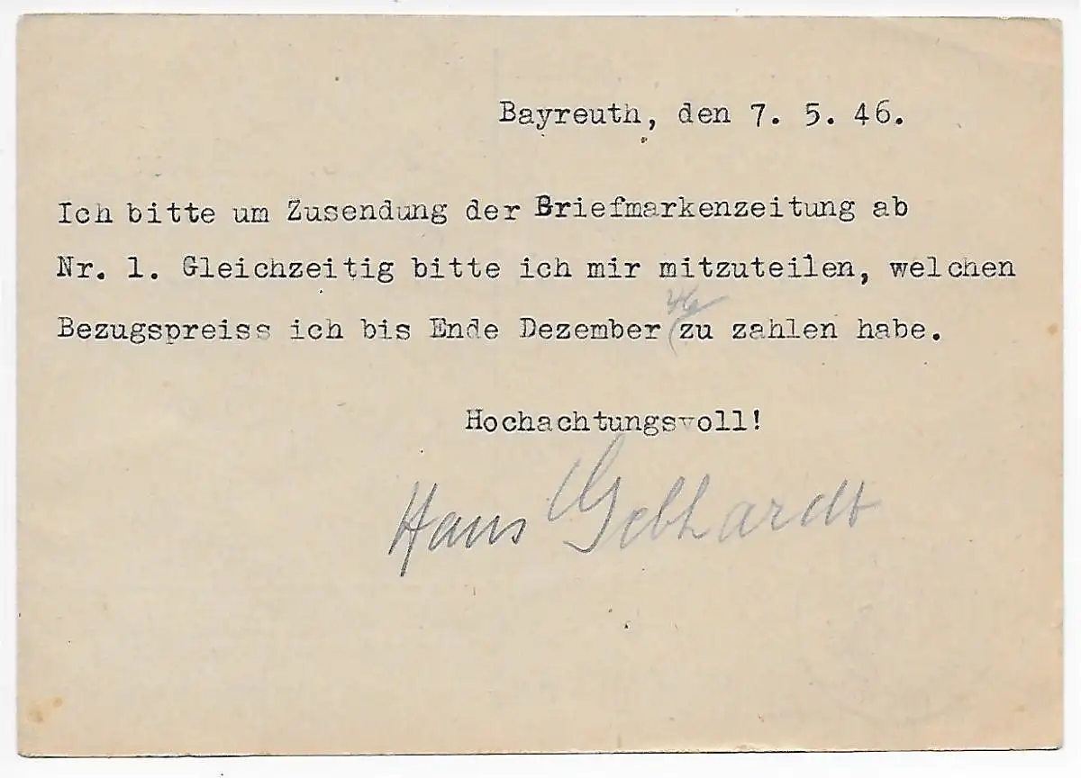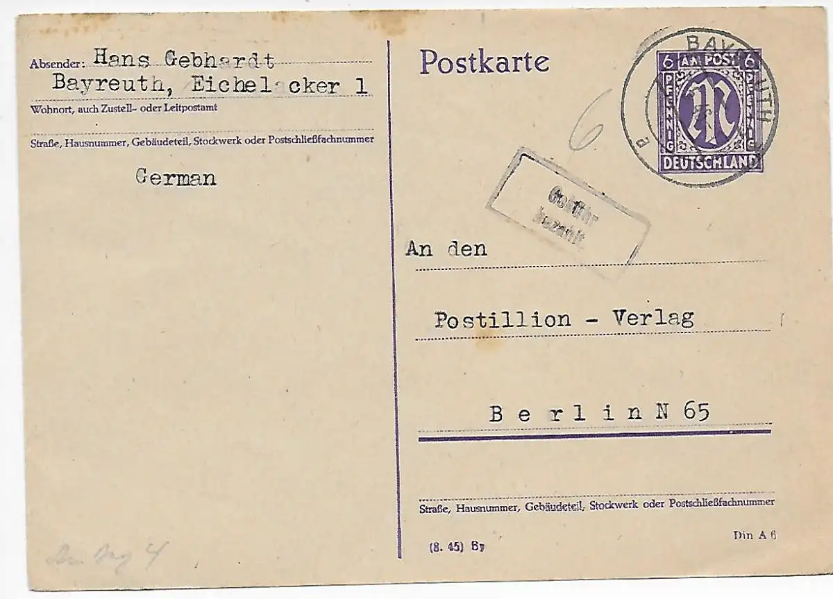 BiZone: Carte postale Payée Bayreuth selon Barlin 1946